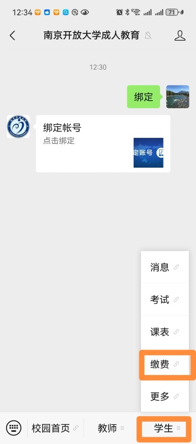 1、关注南京开放大学成人教育微信公众号